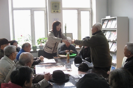离休党总支书记陈寒冰向刘波同志赠送了《中国共产党党史》