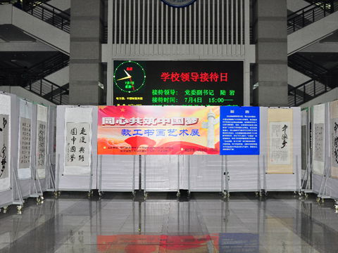 为贯彻党的十八大精神,深化“中国梦”的主题宣传教育,在中国共产党成立92周年到来之际,于7月1日在西区新教学主楼一楼大厅举办“同心共筑中国梦”教工书画艺术展。