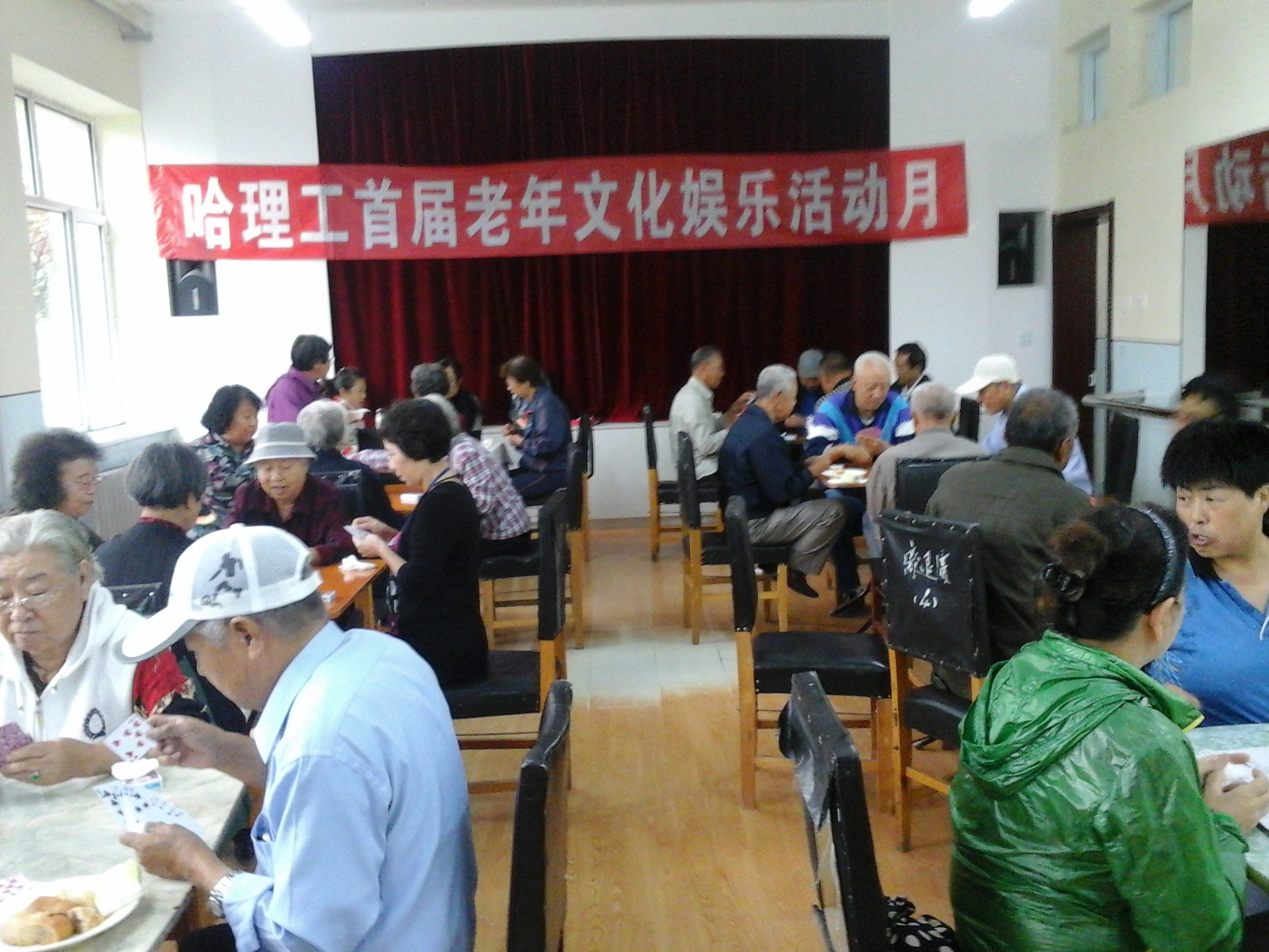 为丰富离退休老同志日常生活,增进老同志间的相互交流,营造和谐愉悦的氛围,2014年9月5日上午9:00时,哈尔滨理工大学离退休工作处老年文化娱乐月系列活动之扑克比赛,在西区一食堂三楼教工餐厅、东区活动室、北区活动室拉开帷幕。本次比赛恰逢中秋节临近,离退休工作处为参赛老同志们准备了月饼、西瓜,与老同志共度佳节。
