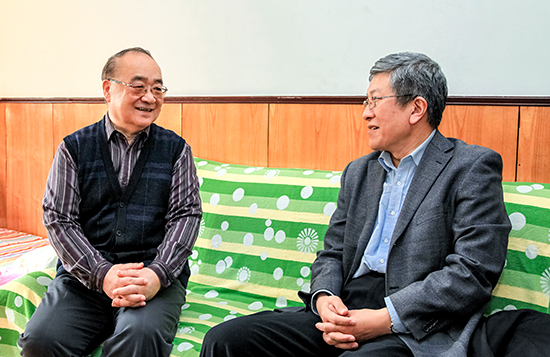 2015年2月12日,校党委书记赵国刚、校长李大勇分别走访慰问了邓中兴、王少杰、赵奇、汤蕴�、张礼勇等退休在哈的老领导、老专家,同时通过电话或电子邮件等方式对在国外及外地的高军、雷清泉、严成斌、李振加、任善之等老领导、老专家致以新春问候。在与老同志们交谈时,详细了解他们的生活和健康情况及存在的困难,耐心聆听他们对学校的要求和建议。对他们在学校发展中所做出的突出贡献和无私奉献表示感谢和敬意。并向他们通报了2014年学校从大事多、难事多到好事多、喜事多,所取得的多项喜人成绩。祝老领导、老专家们新春快乐,身体健康!
