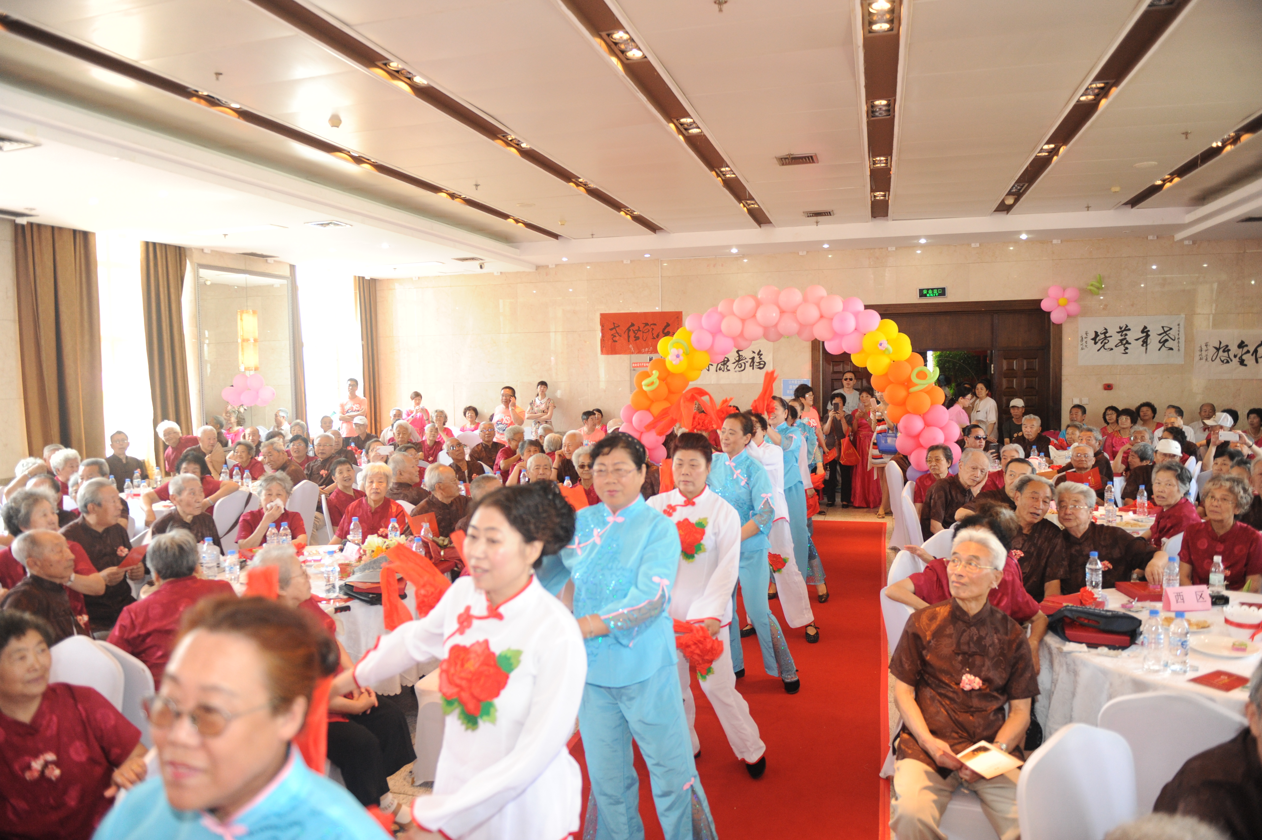 “相濡以沫跨世纪、风雨同舟五十载”,7月7日上午9:30时,离退休工作处为结婚50年以上的136对离退休职工举办的首届金婚庆典活动在理工大厦十楼宴会厅举行。随着悠扬的婚礼进行曲,老夫妇们穿着具有民族特色的唐装、佩戴美丽的胸花、踏着红地毯携手步入会场。