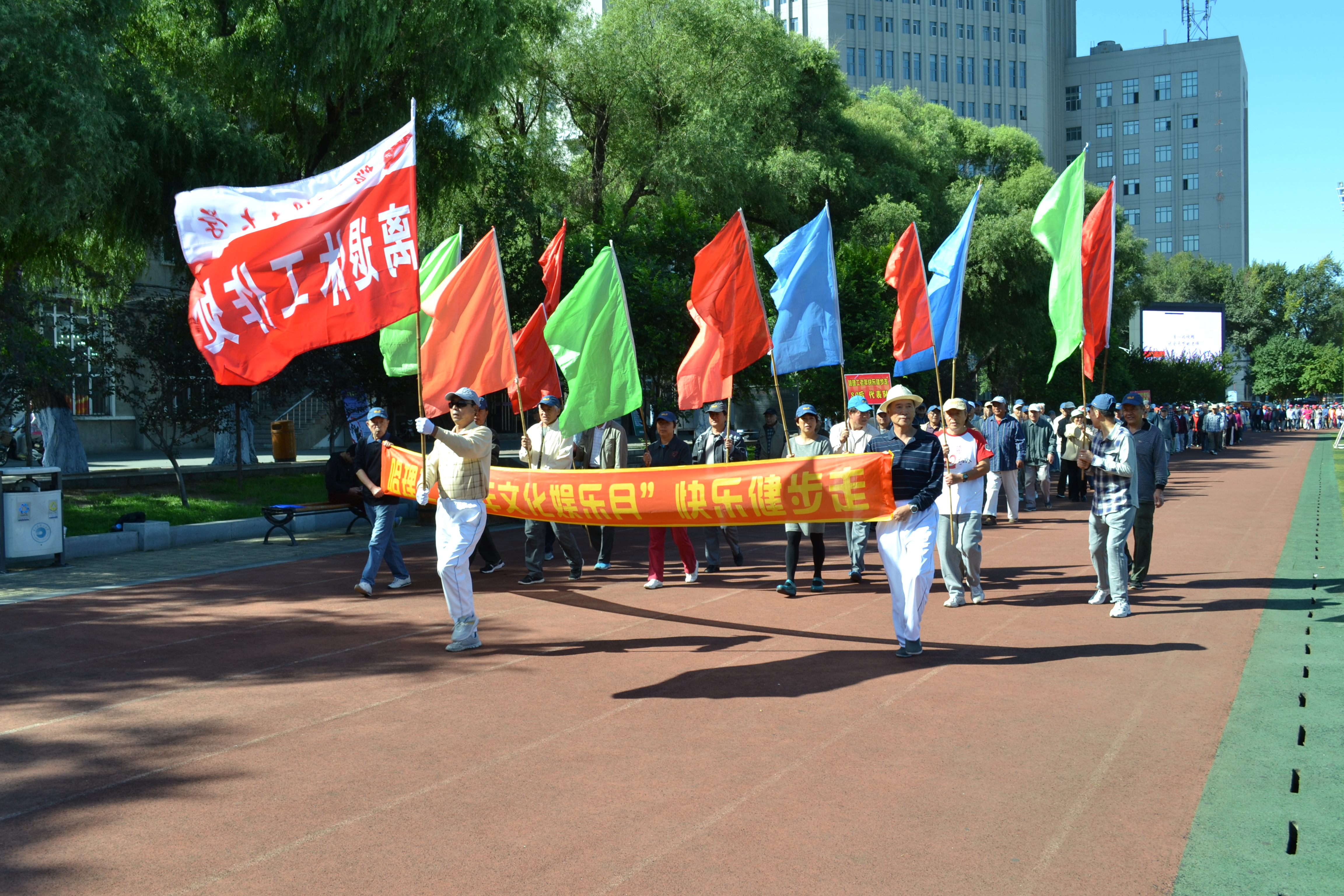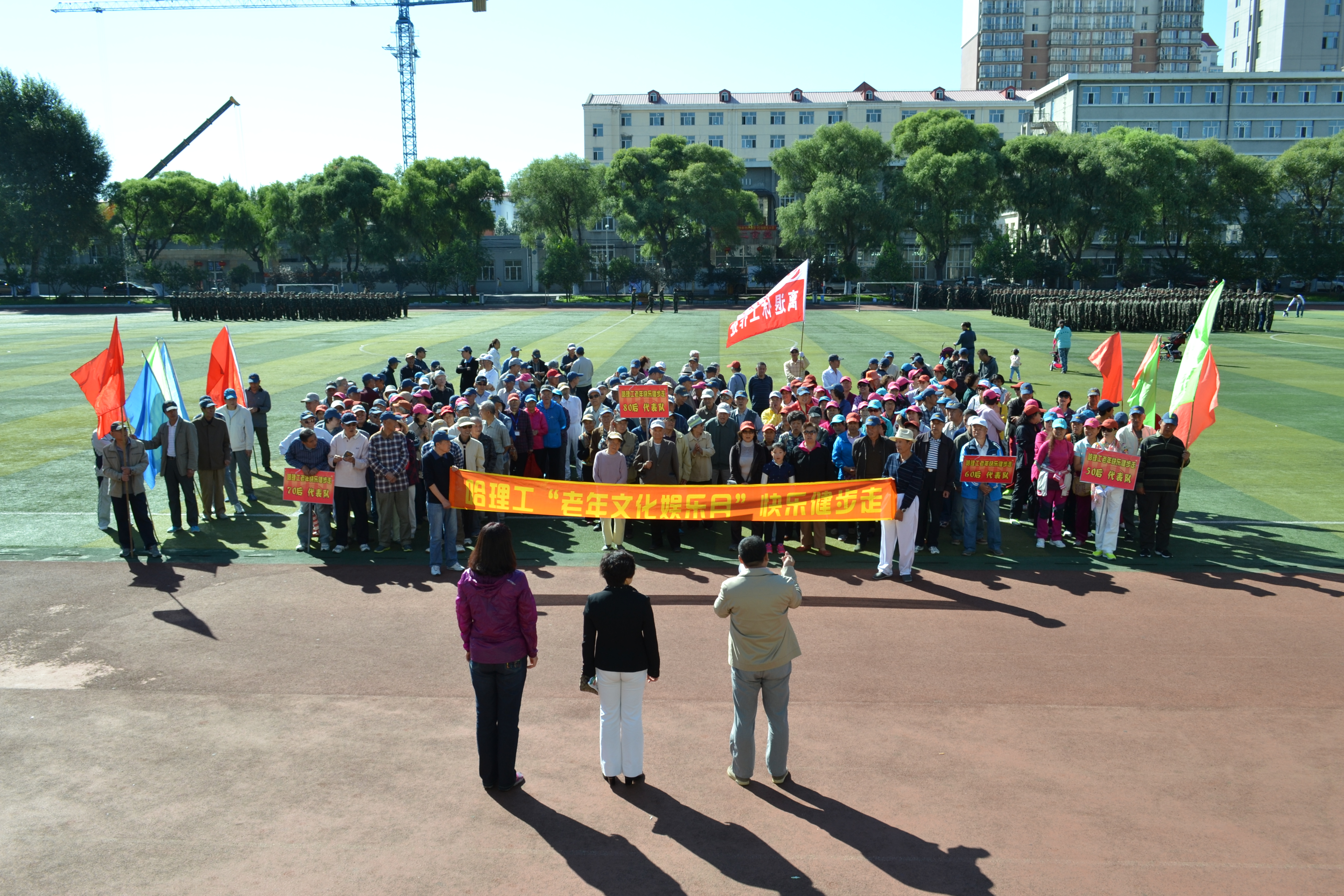 为庆祝第三十一个“教师节”及“中秋节”的到来,9月10日上午,哈理工离退休工作处组织离退休职工在西区休闲广场、东区运动场及北区紫荆城小区院内举办了“哈理工老年文化娱乐活动月快乐健步走”活动,旨在通过健步走这种受群众欢迎的健身活动,让广大离退休职工一起走出健康和快乐,走出幸福与和谐。校党委副书记陆岩、离退休工作处领导班子成员及全体工作人员出席了本次活动。