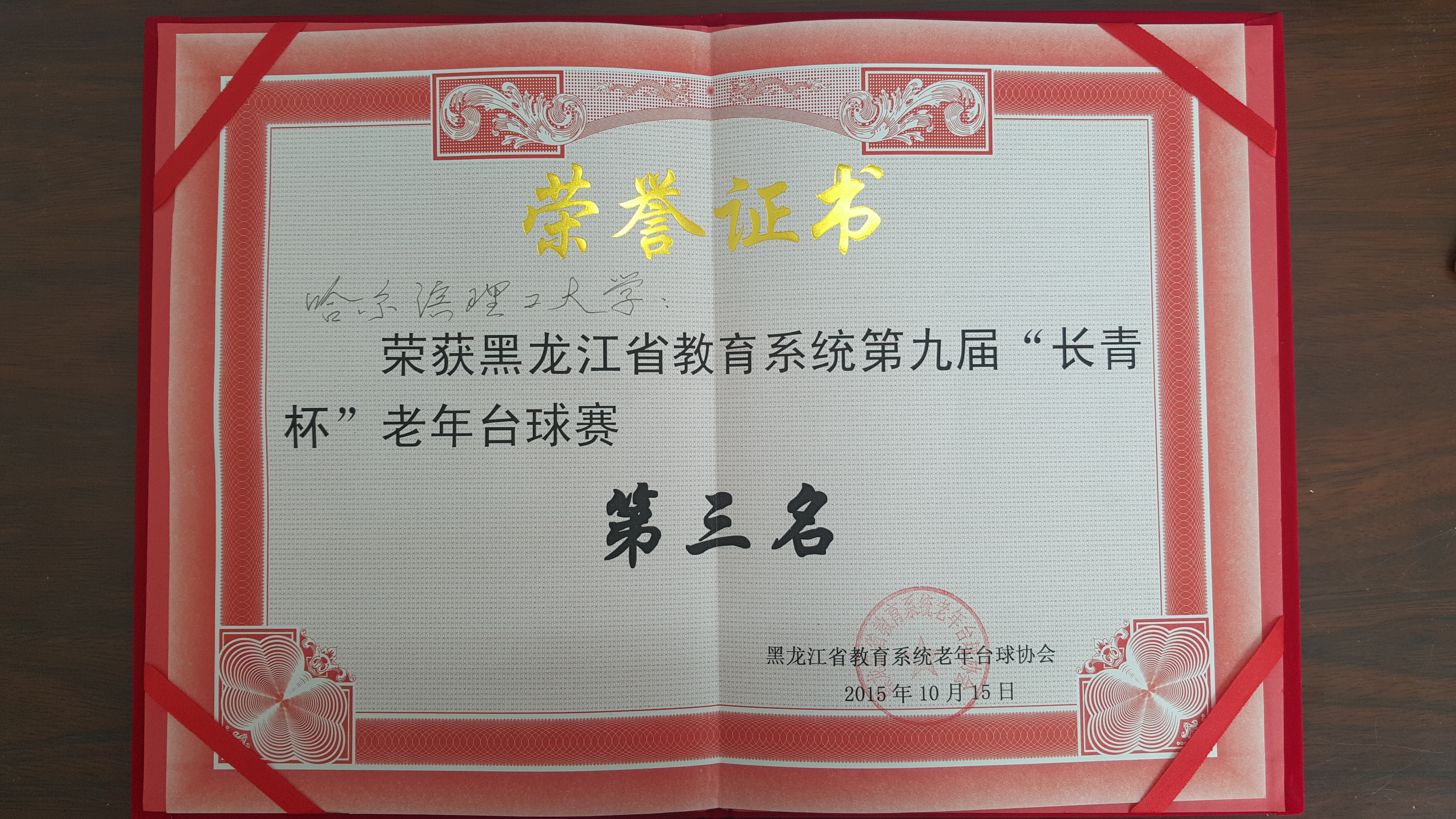 2015年10月13日至15日,由黑龙江省教育厅主办、哈尔滨工业大学离退休工作处承办的“2015年全省教育系统‘长青杯’老年台球赛”在哈尔滨工业大学活动中心成功举行。本次活动共有来自省内18个代表队的126名队员参加。比赛分成两个阶段,第一阶段采用分组单循环,4个小组每组决出前2名;第二阶段采用交叉淘汰的形式决出前四名。比赛在紧张有序、团结和谐的氛围中进行,参赛老同志们以极大的热情、高超的技艺赢得了大家的好评。经过三天角逐,哈尔滨师范大学代表队获得了本次比赛冠军,东北农业大学获第二名,哈尔滨理工大学、哈尔滨医科大学并列第三名。