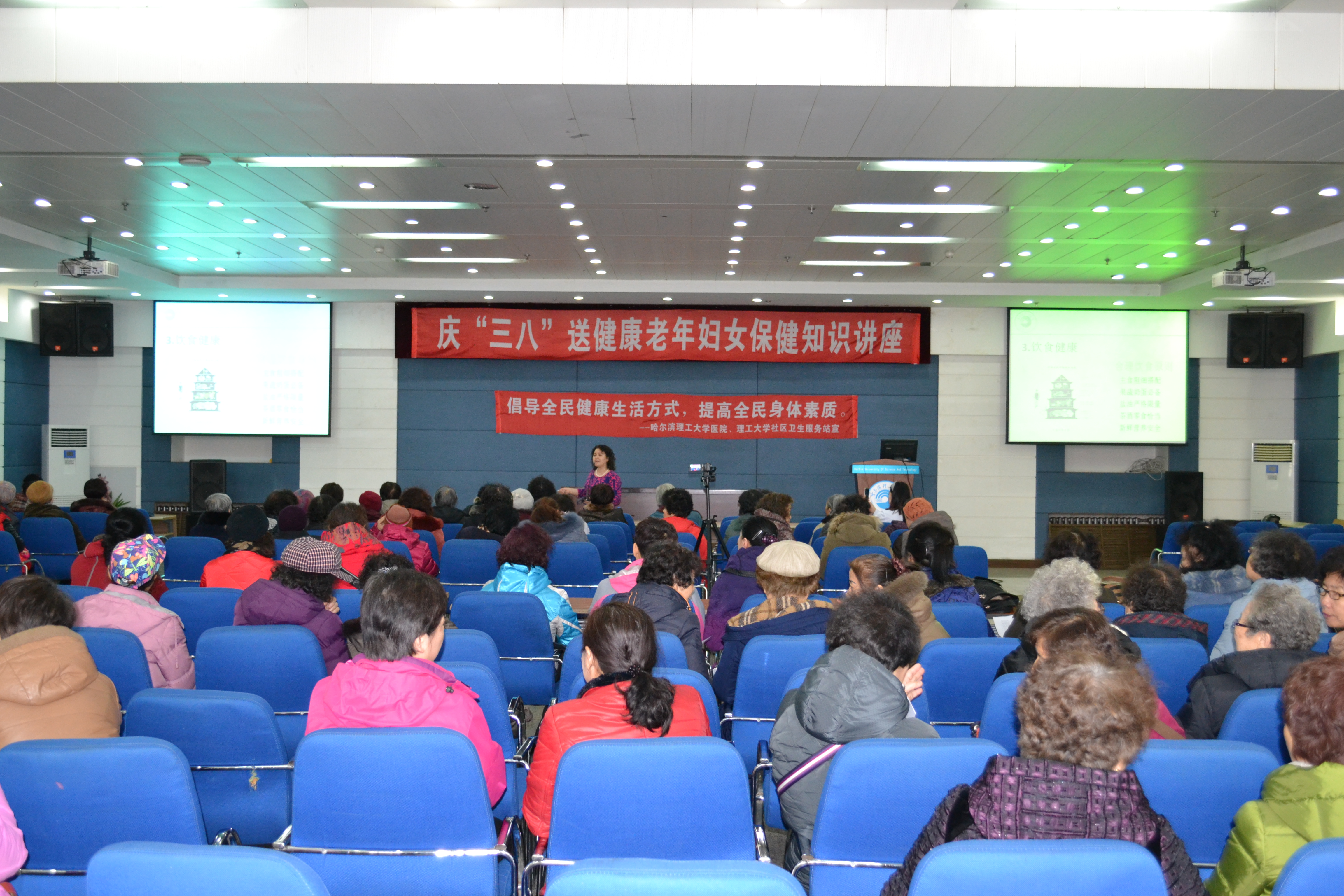 为庆祝“三八”妇女节,进一步提高广大离退休女教工健康保健知识,3月7日上午9点,离退休工作处在西区一号楼一楼多功能厅、东区活动室、北区活动室举办了庆“三八”送健康老年妇女保健知识讲座。我们邀请了校医院贾程之大夫、李姝大夫、韦大夫作了题为“老年妇女保健知识”讲座。离退休工作处各区负责人主持会议并向全体离退休女教工送上节日的祝福。