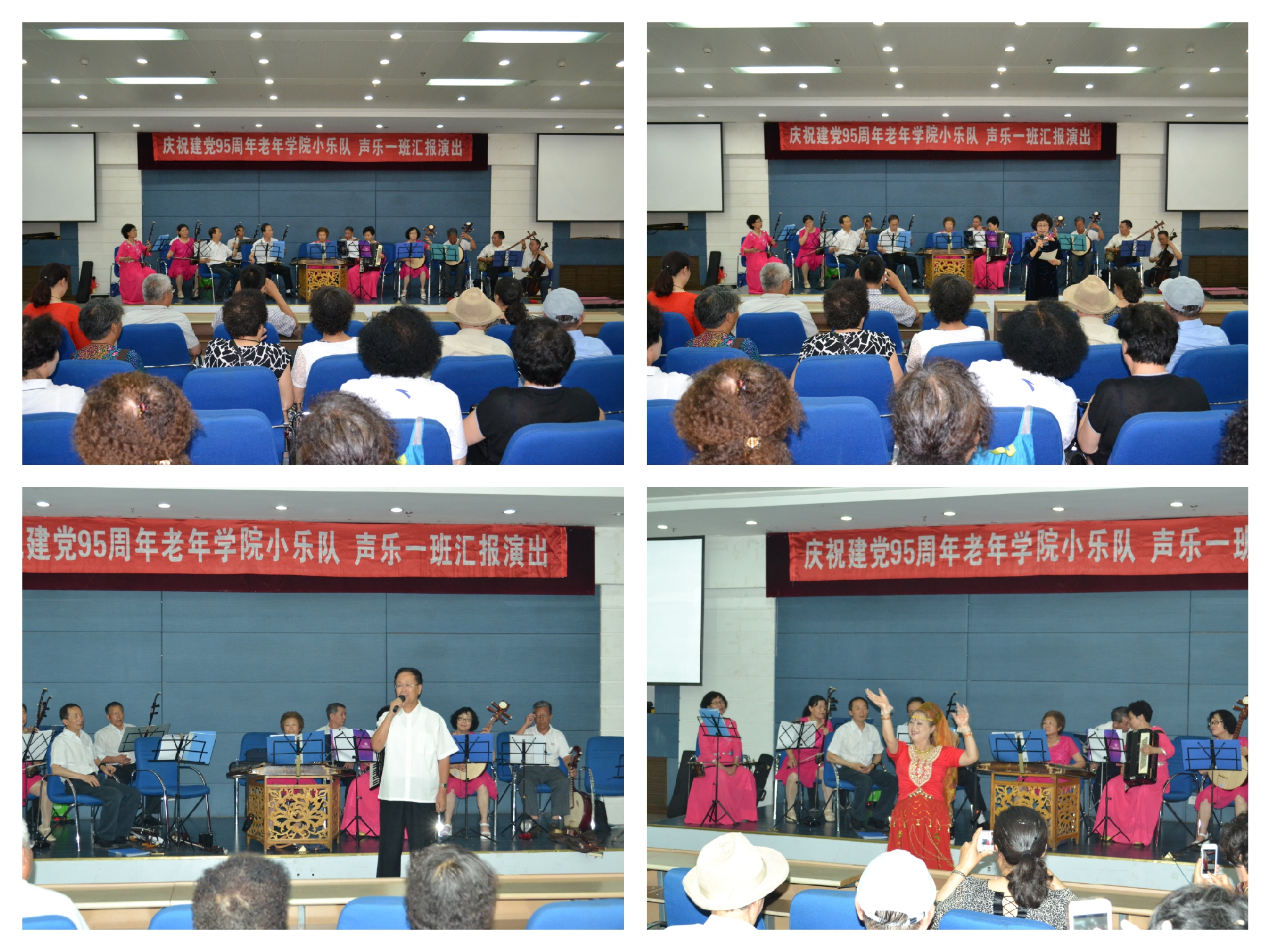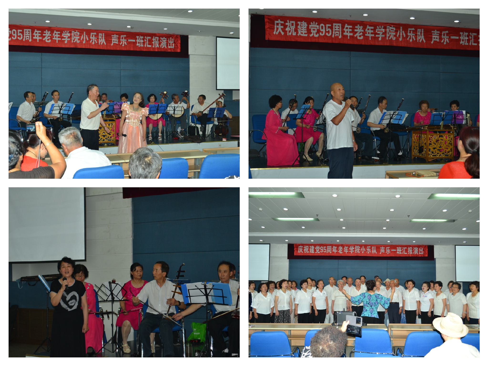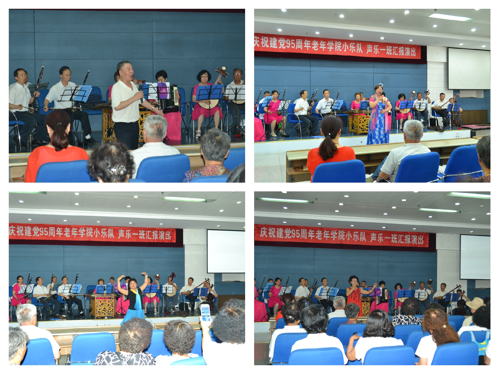 悠扬婉转的唱腔,轻快灵巧的舞步……为庆祝中国共产党成立95周年,深入贯彻习近平总书记关于“推动老龄事业全面协调可持续发展”的讲话精神,结合“两学一做”教育实践活动,哈理工老年学院小乐队、声乐一班于2016年6月28日下午在西区1号楼报告厅举办了汇报演出。离退休工作处处长陈寒冰、离退休党委书记陈洪彬、离退休工作处副处长辛爱梅及工作人员应邀出席本次活动。
