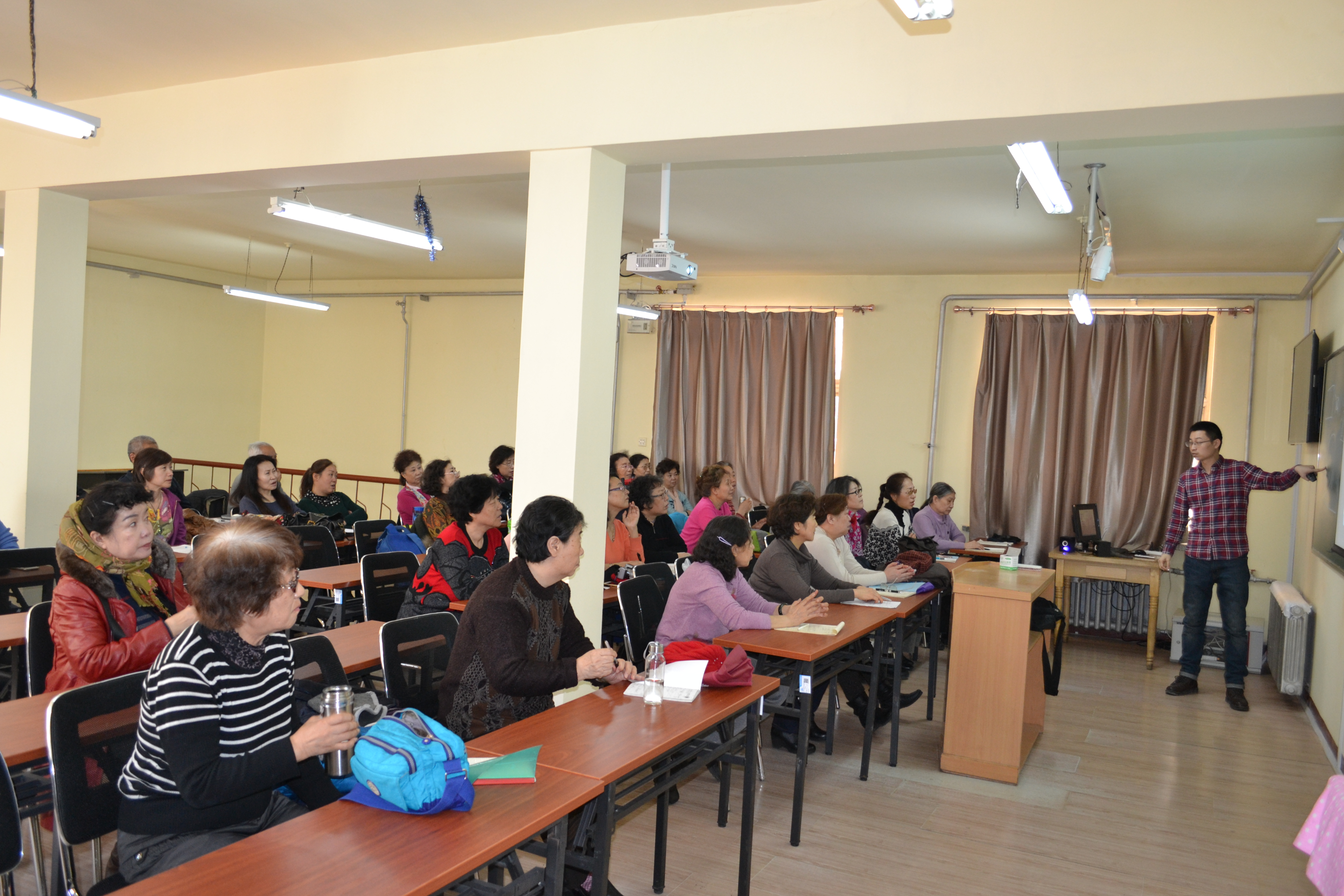 在各方面的全力支持和保障下,开学后的老年学院教学秩序井然,老年学员学习热情高涨,各项工作有条不紊地进行。广大学员和教师以及工作人员以饱满的精神面貌投入到新学期的学习与工作中,老年学院呈现出一派“跨进校园就年轻,走进教室就开心”的喜人景象。