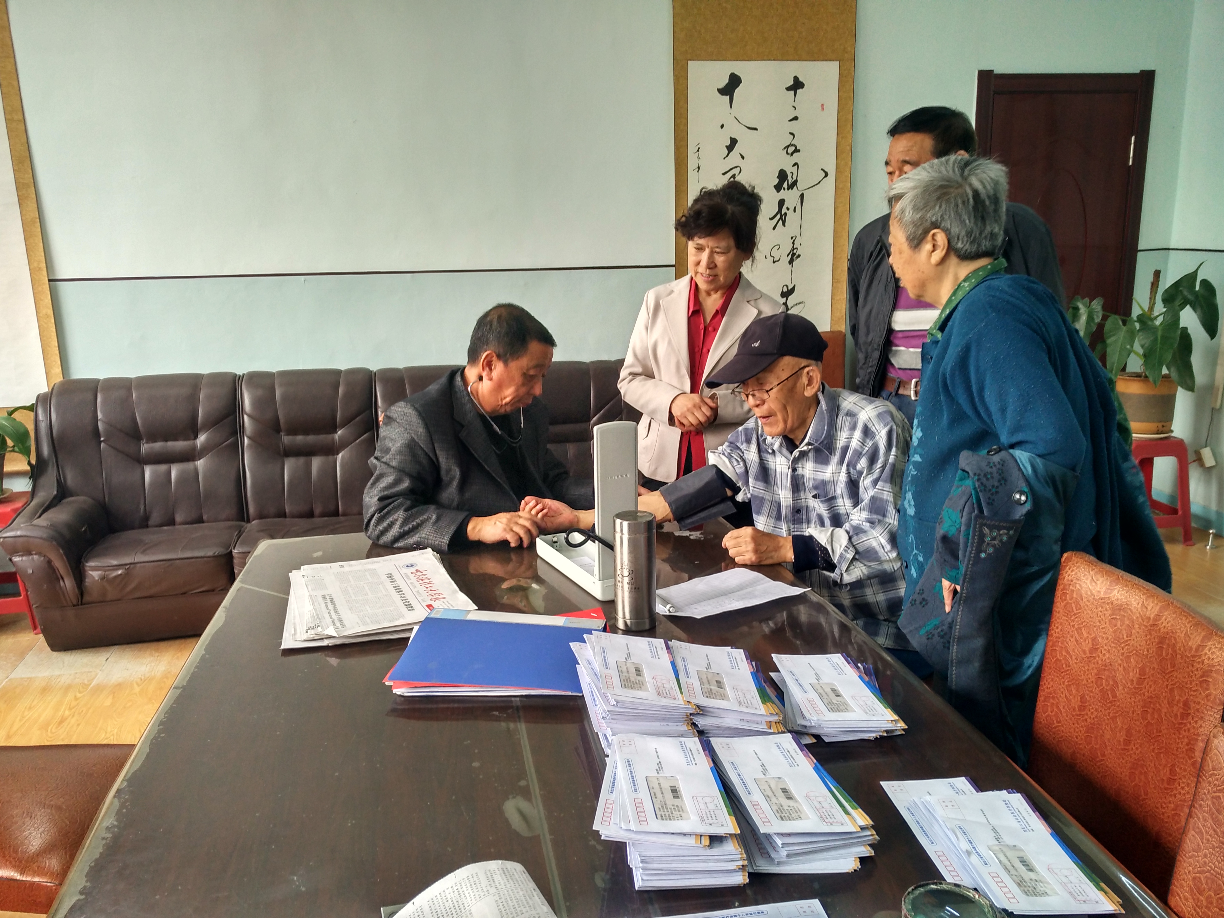 校医院每周定期在各区活动室为离退休职工测量血压、听诊心肺,耐心地解答他们提出的各种疑问,并结合检查中发现的问题提出治疗意见,叮嘱老同志按时服用药物等。此外,医生还针对离退休职工的常见疾病进行了专业知识普及。