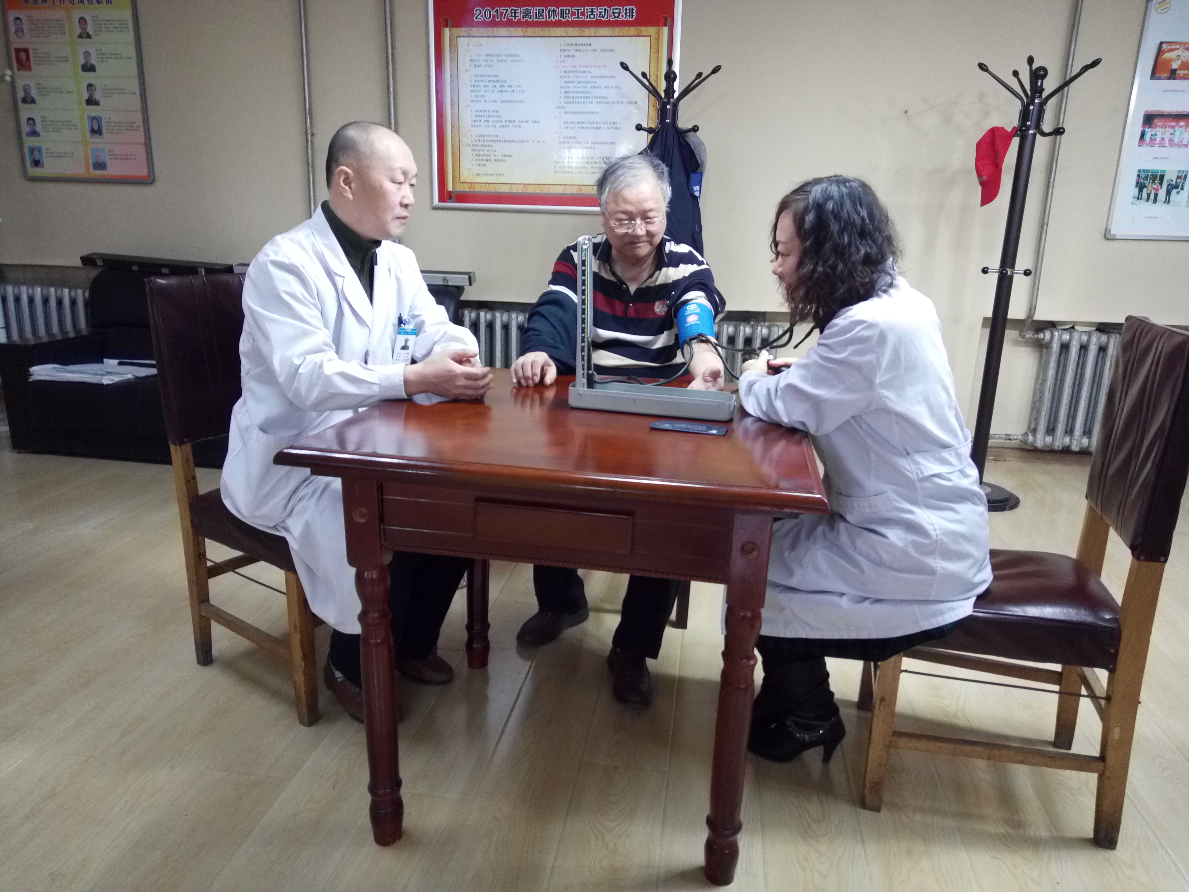 随着居民生活水平的提高,高血压等慢性病的发病率也逐年上升,为使我校离退休职工及时的了解身体状况,长期以来,我校校医院医生定期在各校区活动室为老同志免费义诊。