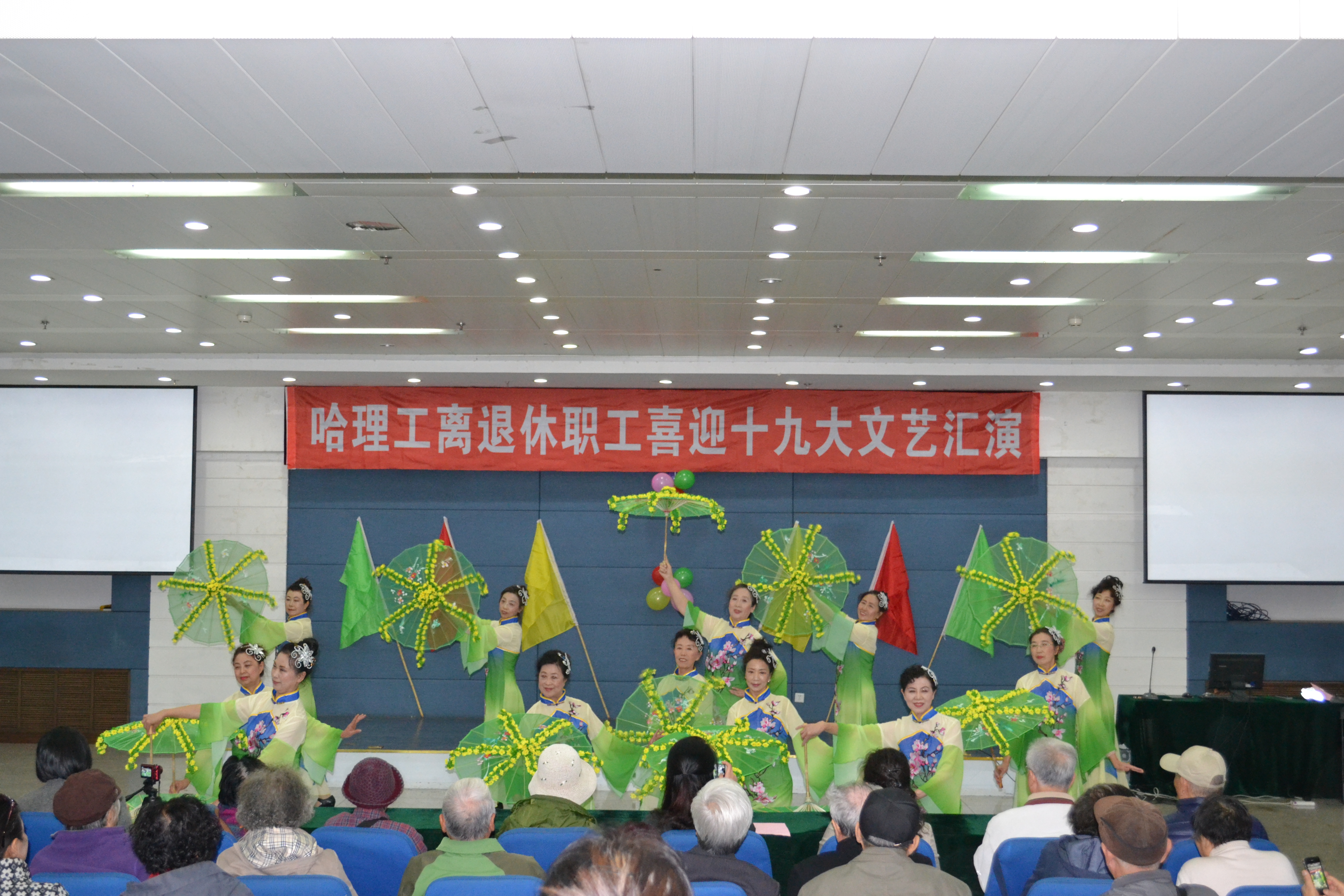 9月27日、29日下午,哈理工离退休职工“庆双节 喜迎十九大胜利召开”文艺汇演在东区礼堂、西区一号楼多功能厅拉开帷幕。离退休工作处处长陈寒冰、副处长辛爱梅及全体工作人员参加活动。老同志们用歌声和舞姿盛赞党的十八大以来祖国的辉煌成就,讴歌理工新发展、新变化,喜迎党的十九大胜利召开。