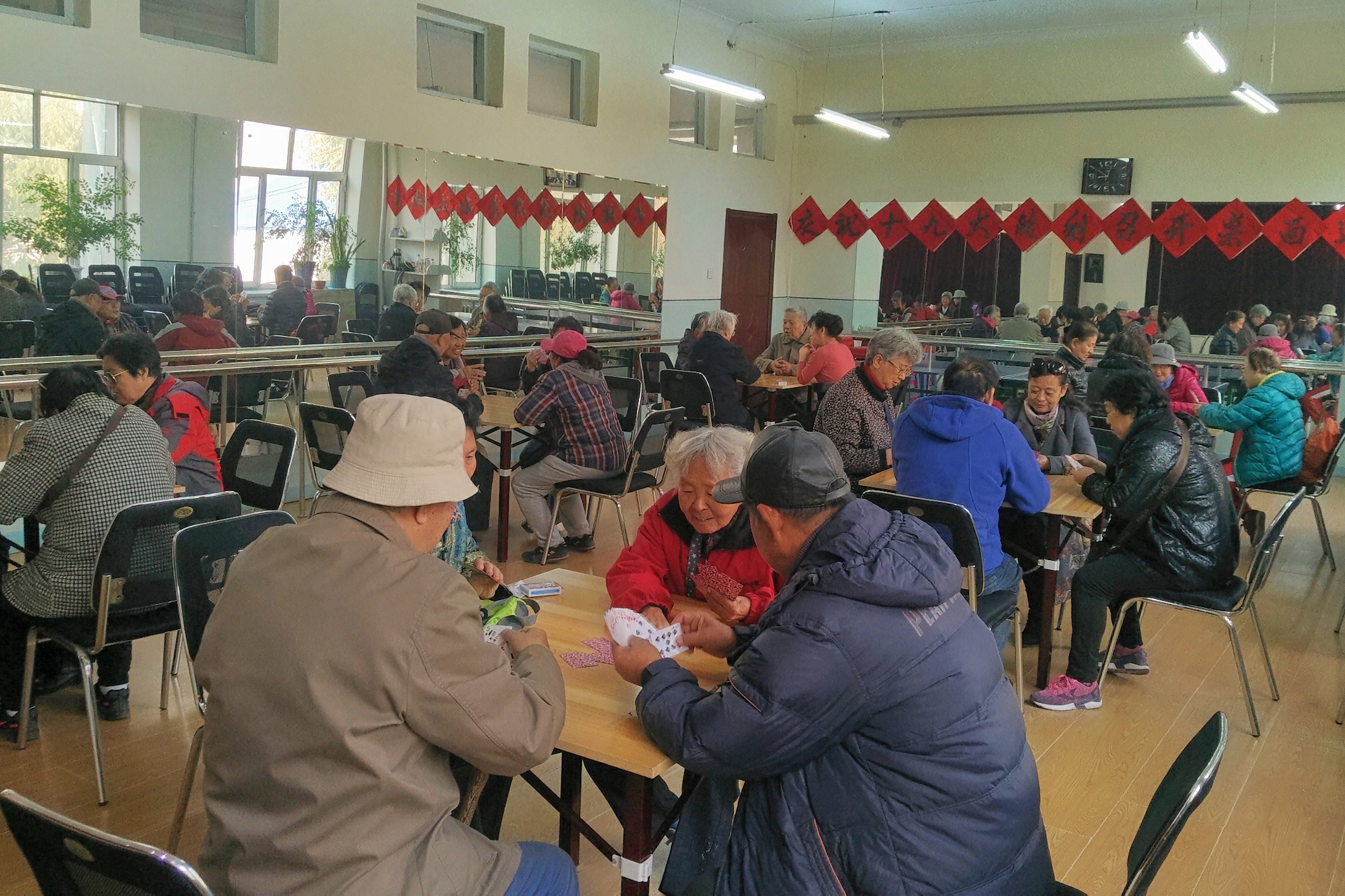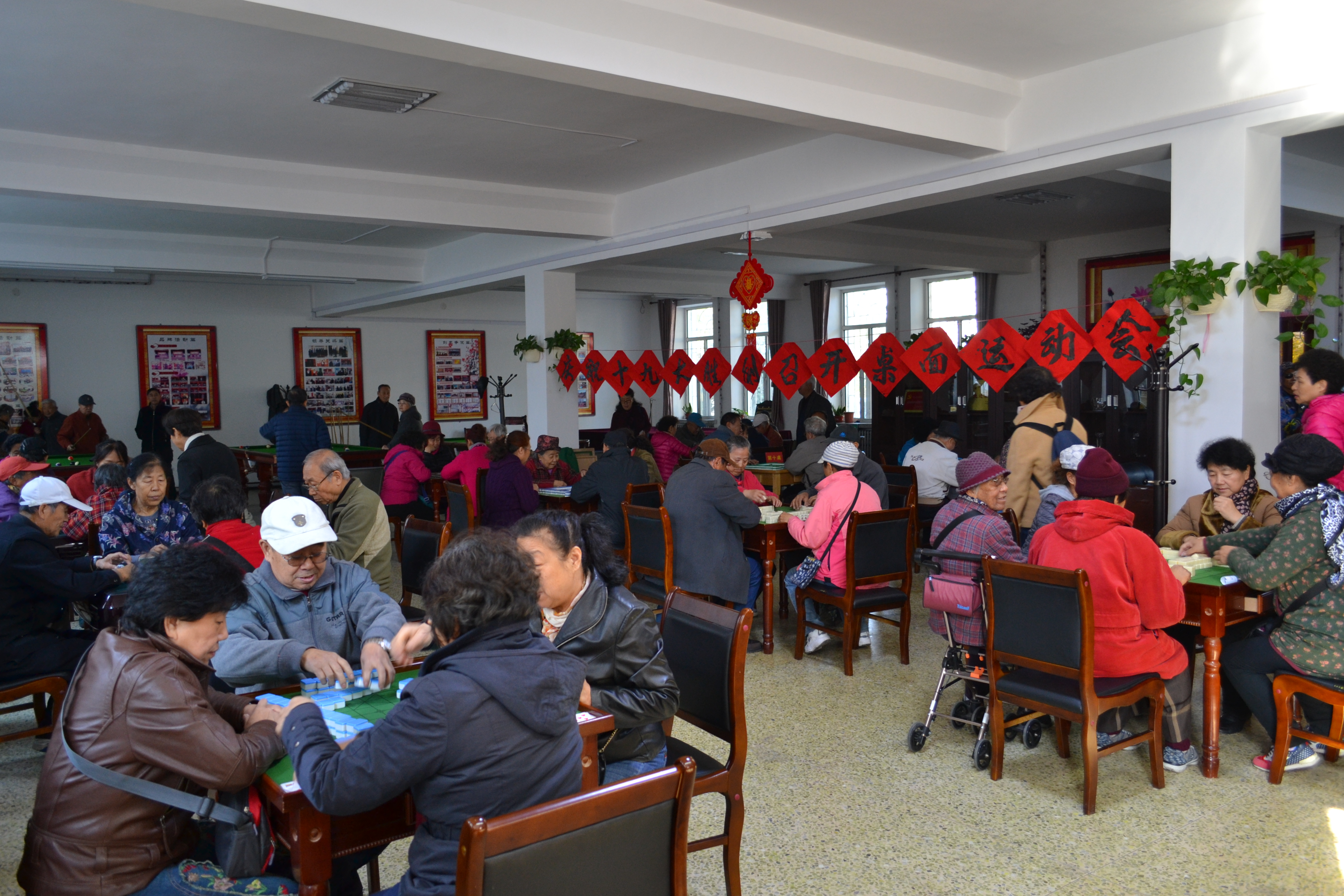 10月16日-20日离退休职工室内桌面运动会,在各区活动室、西区食堂大厅举行。离退休老同志以多种活动的形式“庆祝十九大胜利召开”。